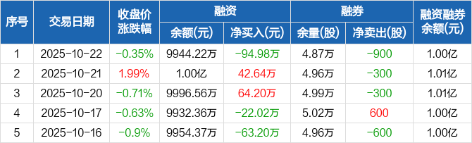 太平鸟:融资净偿还94.98万元,融资余额9944.22万元(10-22)
