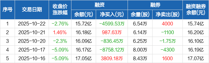 华钰矿业:融资净偿还4599.53万元,融资余额15.72亿元(10-22)