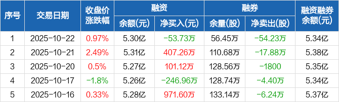 天地科技:融资净偿还53.73万元,融资余额5.3亿元(10-22)