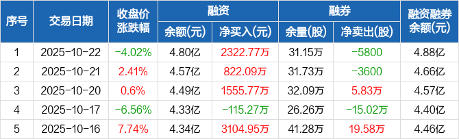 宏发股份:融资余额4.8亿元,创历史新高(10-22)