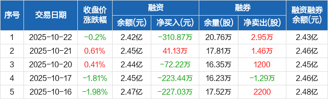 金晶科技:融资净偿还310.87万元,融资余额2.42亿元(10-22)
