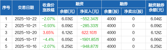 利元亨:融资净偿还552.34万元,融资余额6.03亿元(10-22)