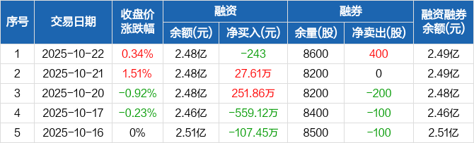 时代出版:融资净偿还243元,融资余额2.48亿元(10-22)