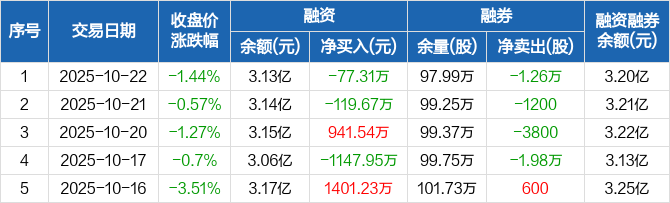 旗滨集团:融资净偿还77.31万元,融资余额3.13亿元(10-22)