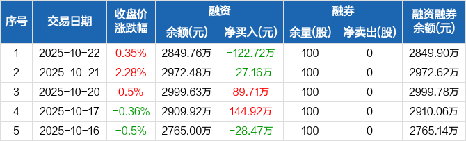 恒尚节能:融资净偿还122.72万元,融资余额2849.76万元(10-22)