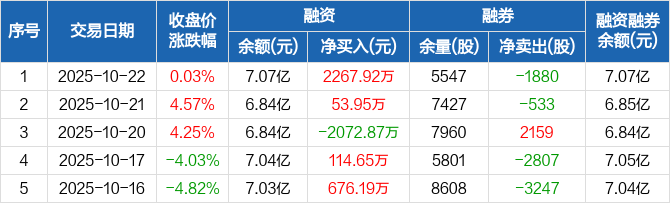 臻镭科技:融资净买入2267.92万元,融资余额7.07亿元(10-22)
