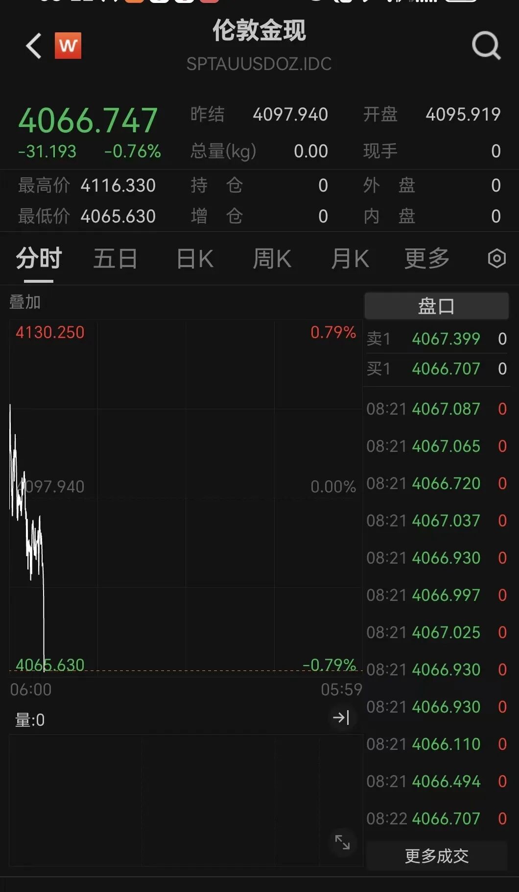 受美国财政部长贝森特发言等影响,昨夜今晨,现货黄金一度重回4100美元/盎司关口,但早间再次短线走低,现报4066.747美元/盎司。