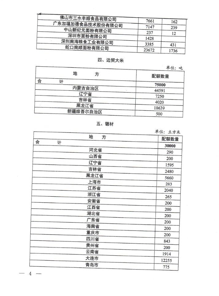 边贸大米出口配额仅限于企业对与本地区毗邻国家传统边贸市场的出口,相关地区商务主管部门在核发出口许可证时,应按照本地区确定的出口企业名单,严格审核出口合同等材料,严禁企业跨省份或从本地区的非边贸口岸报关出口。下达供港澳小麦粉出口配额仅限于对香港、澳门市场出口,严禁企业以任何形式转口至其他国家和地区。相关出口许可证发证机构在出口许可证备注栏内加注“限于出口至香港,不得转口”或“限于出口至澳门,不得转口”。