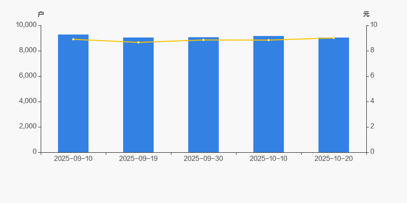 截至2025年10月20日,公司最新总股本为2.05亿股,其中流通股本为1.57亿股。户均持有流通股数量由上期的1.72万股上升至1.74万股,户均流通市值15.69万元。