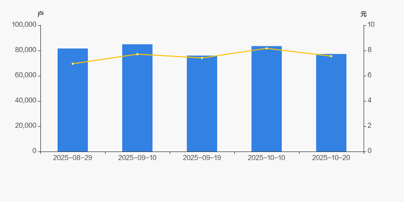 2025年8月29日至今,公司股东户数有所下降,区间跌幅为5.31%。2025年8月29日至2025年10月20日区间股价上涨8.63%。