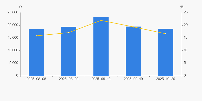 2025年8月8日至今,公司股东户数有所增长,区间涨幅为0.32%。2025年8月8日至2025年10月20日区间股价上涨5.25%。