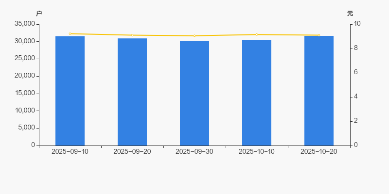 2025年9月10日至今,公司股东户数有所增长,区间涨幅为0.22%。2025年9月10日至2025年10月20日区间股价下降1.30%。