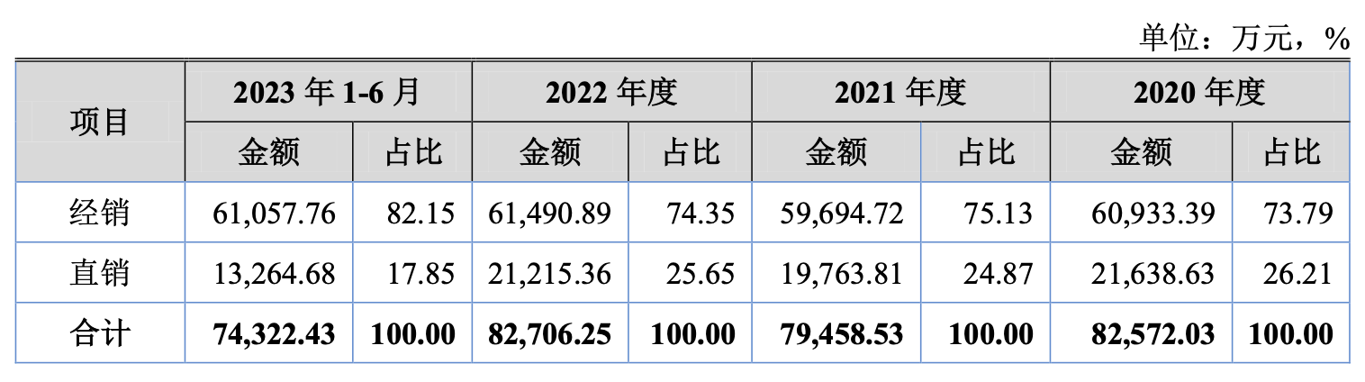报告期内,九州风神的经销收入占主营业务收入比例分别为73.79%、75.13%、74.35%和82.15%。这种对经销商高度依赖的模式,使公司对销售渠道的控制力较弱,难以直接掌握终端市场情况。