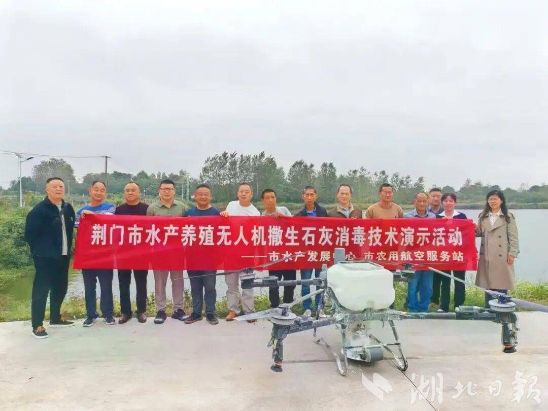 湖北日报讯(记者汪彤)近日,荆门市水产发展中心、荆门市农用航空服务站联合在沙洋县军勇水产养殖专业合作社举办水产养殖无人机撒生石灰技术示范现场会,持续推进无人机在水产养殖领域的应用。