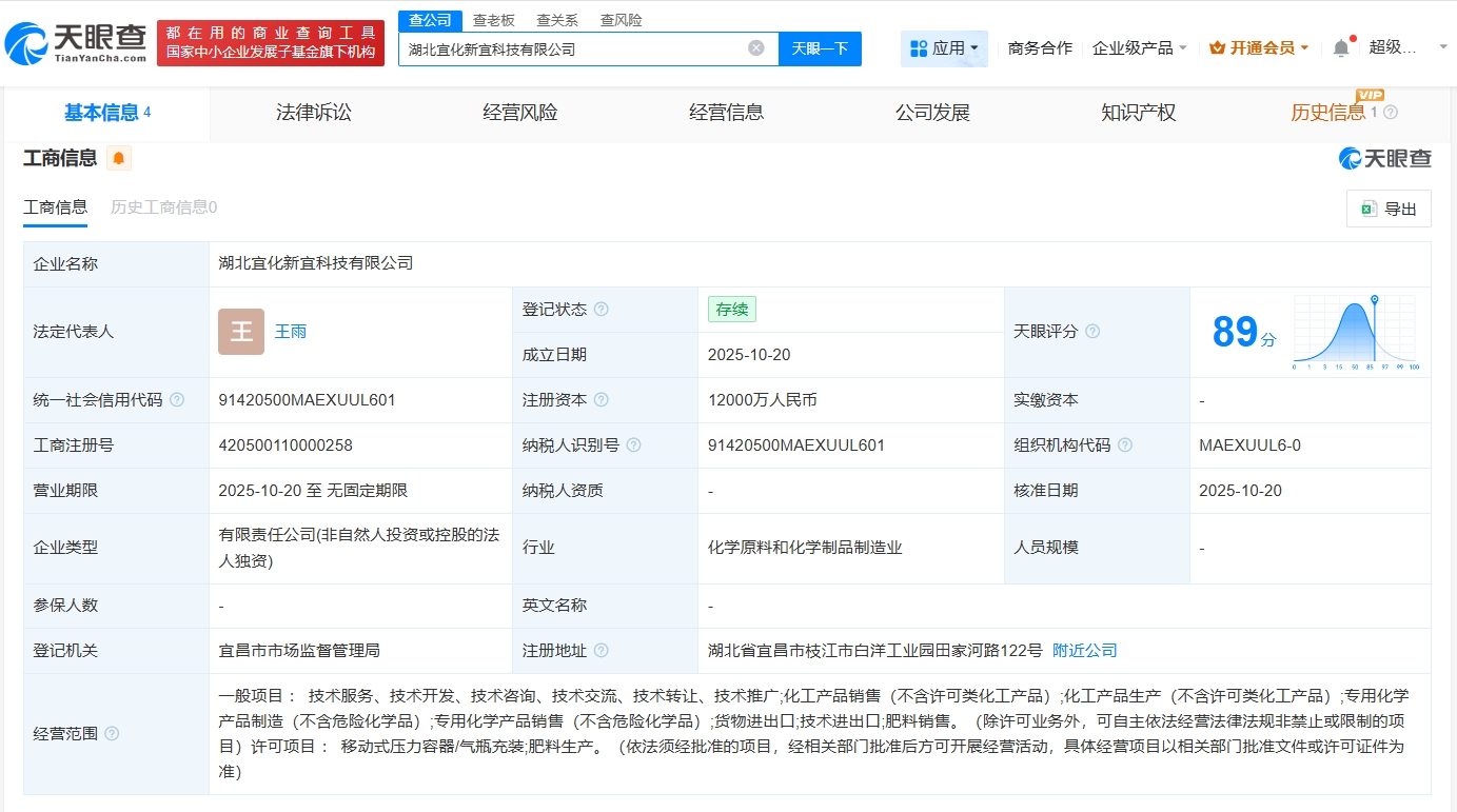 湖北宜化成立新宜科技公司