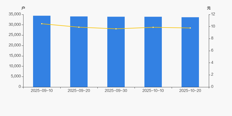 截至2025年10月20日,公司最新总股本为3.8亿股,其中流通股本为3.7亿股。户均持有流通股数量由上期的1.09万股上升至1.1万股,户均流通市值10.72万元。