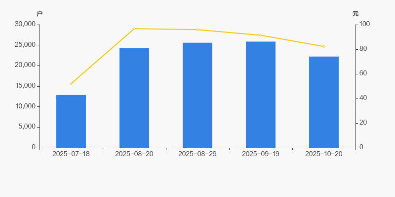 截至2025年10月20日,公司最新总股本为1.03亿股,其中流通股本为8823.14万股。户均持有流通股数量由上期的3411股上升至3970股,户均流通市值32.66万元。