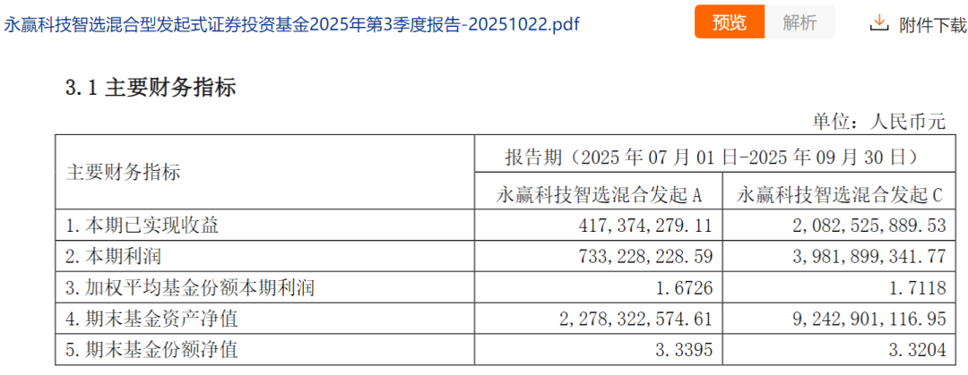 最新披露的公募基金2025年三季报显示,多只基金规模大幅增长。其中,永赢科技智选混合基金规模增至115亿元,较去年底增长超440倍。