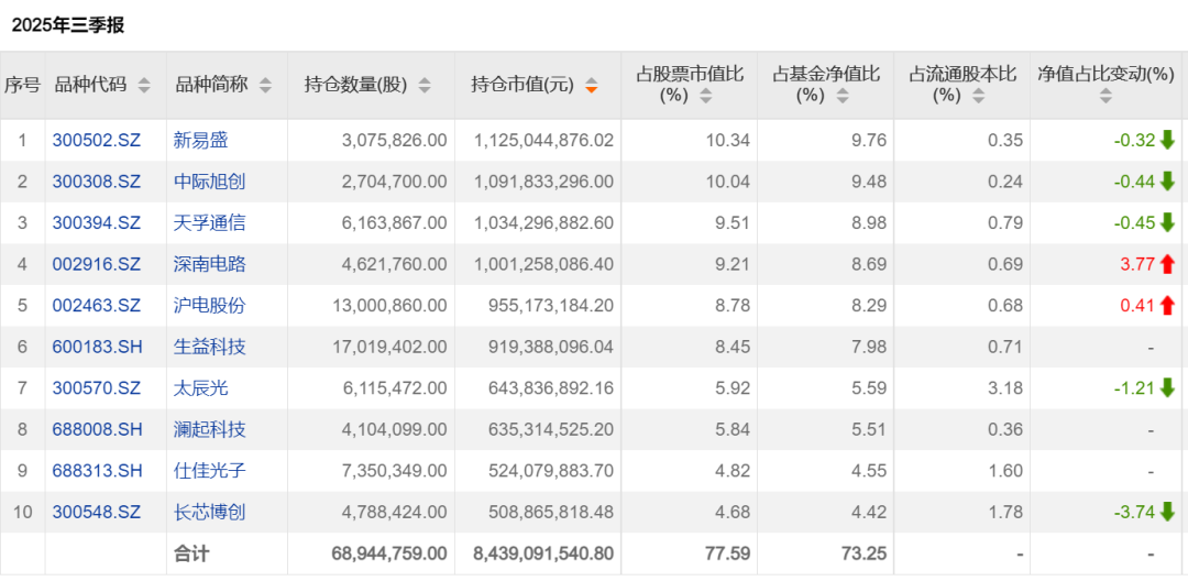 类似的还有,截至三季度末,北信瑞丰优势行业股票基金前十大重仓股包括新易盛、生益科技、宁德时代、福达股份、中际旭创、立讯精密、长川科技、澜起科技、寒武纪、吉比特。