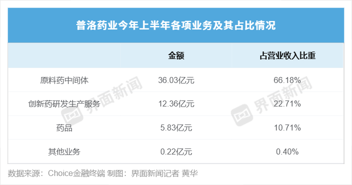 普洛药业今年上半年业绩情况制图:界面新闻记者黄华