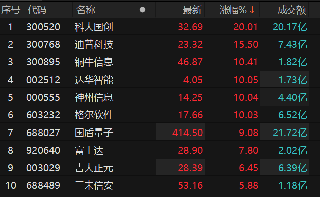量子科技概念尾盘拉升 科大国创20CM涨停