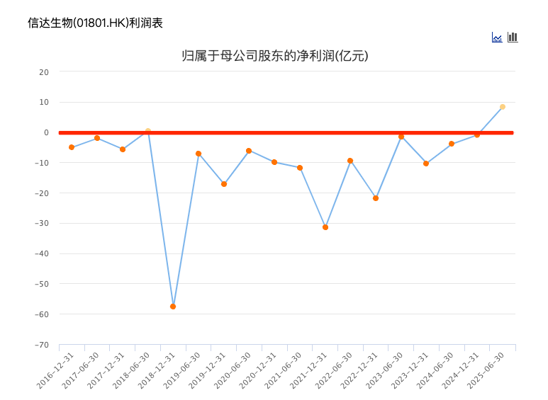 《财中社》注意到,过去十年公司一直处于亏损状态,2020年至2024年累计亏损超过100亿元。尽管信达生物在2025年上半年已实现盈利,但8.34亿元的净利润规模对于支撑多个产品的全球三期临床而言仍是杯水车薪。