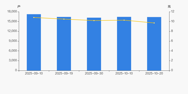 2025年9月10日至今,公司股东户数有所下降,区间跌幅为5.07%。2025年9月10日至2025年10月20日区间股价下降10.34%。