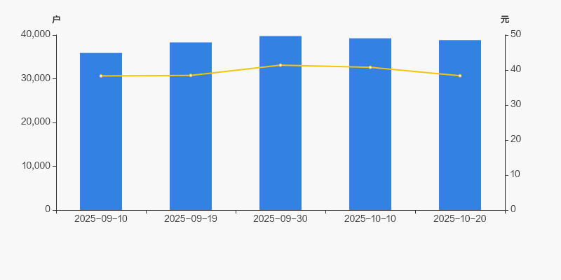 2025年9月10日至今,公司股东户数有所增长,区间涨幅为8.19%。2025年9月10日至2025年10月20日区间股价上涨0.13%。