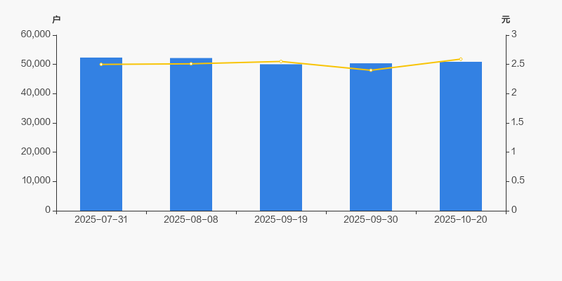 2025年7月31日至今,公司股东户数有所下降,区间跌幅为2.76%。2025年7月31日至2025年10月20日区间股价上涨3.60%。