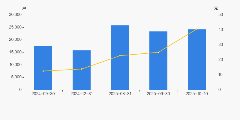 2024年9月30日至今,公司股东户数显著增长,区间涨幅为37.80%。2024年9月30日至2025年10月10日区间股价上涨221.63%。