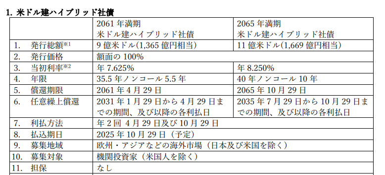 10月23日,软银集团宣布,将发行9亿美元、2061年到期混合债券,初始利率为7.625%;将发售价值11亿美元2065年到期的混合债券,初始利率为8.25%。