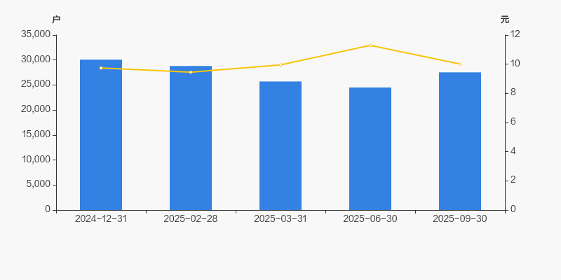 2024年12月31日至今,公司股东户数有所下降,区间跌幅为8.44%。2024年12月31日至2025年9月30日区间股价上涨2.74%。