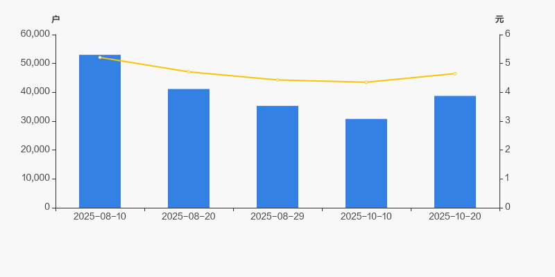 截至2025年10月20日,公司最新总股本为6.36亿股,其中流通股本为4.71亿股。户均持有流通股数量由上期的1.53万股下降至1.22万股,户均流通市值5.66万元。