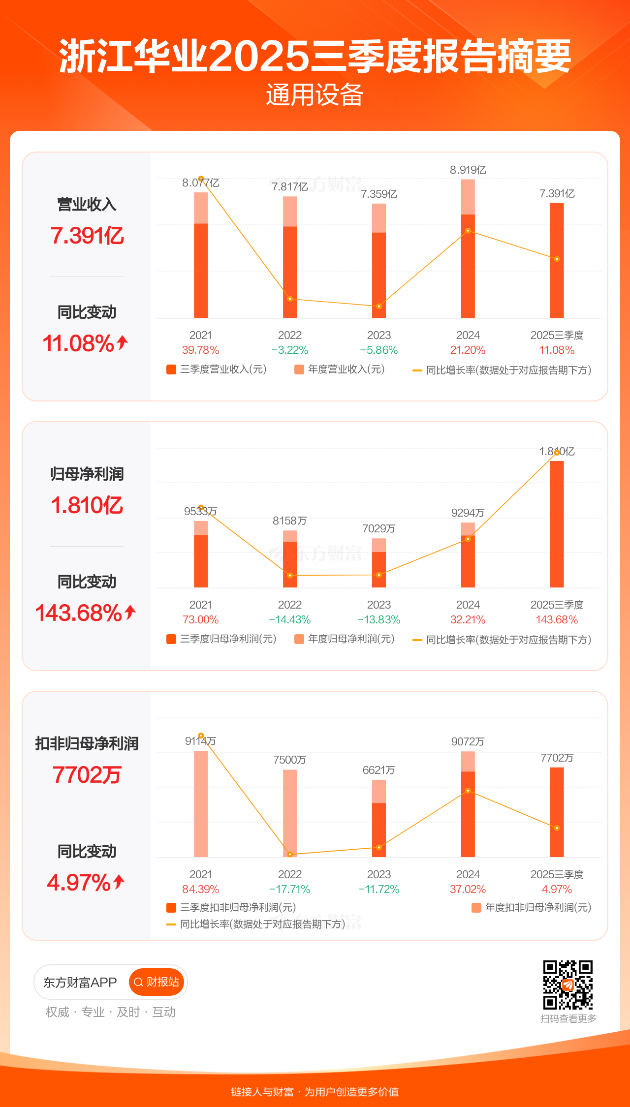 图解财报:浙江华业前三季归母净利润1.81亿元,同比增长143.68%