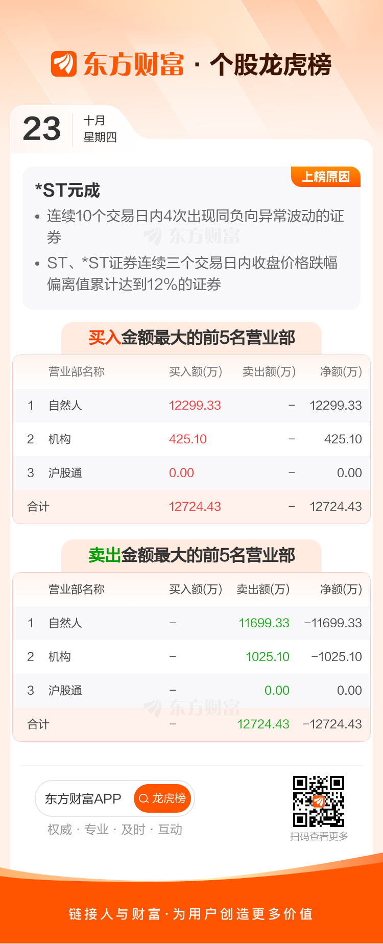*ST元成(603388)龙虎榜数据(10-23)