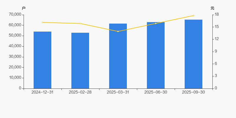 自2025年2月28日以来,公司股东户数连续3期上涨,截至目前增幅为23.48%。2025年2月28日至2025年9月30日区间股价上涨12.19%。