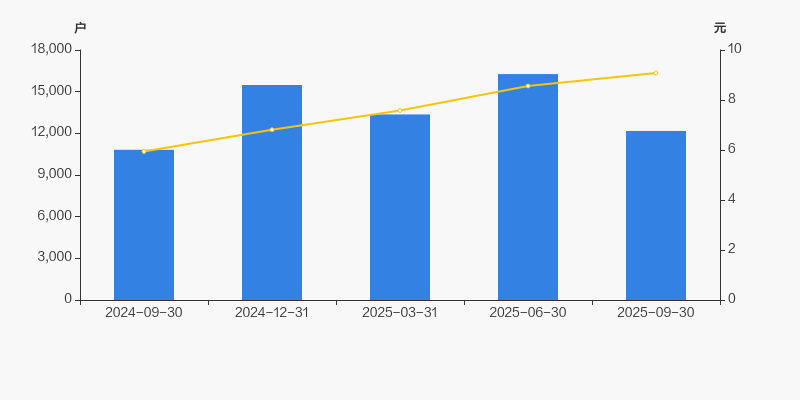截至2025年9月30日,公司最新总股本为2.96亿股,其中流通股本为2.47亿股。户均持有流通股数量由上期的1.52万股上升至2.03万股,户均流通市值18.44万元。