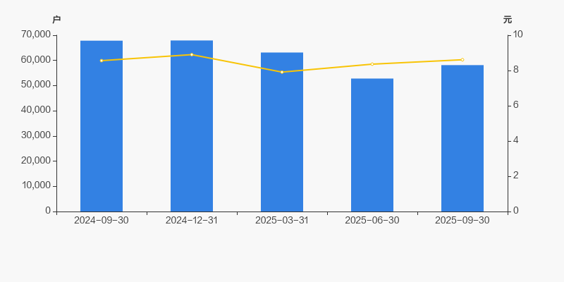 2024年9月30日至今,公司股东户数显著下降,区间跌幅为14.30%。2024年9月30日至2025年9月30日区间股价上涨0.55%。