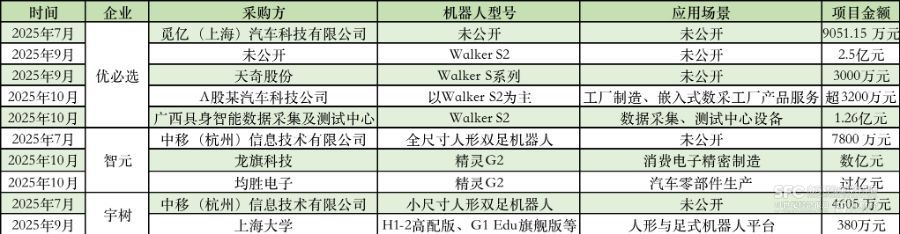 尤其今年下半年以来,人形机器人订单井喷:优必选中标价值1.26亿元的广西具身智能数据采集及测试中心设备采购及安装项目;智元机器人获得了来自均胜电子、龙旗科技等企业的数亿元订单;宇树中标中国移动、上海大学等订单。