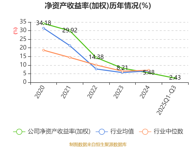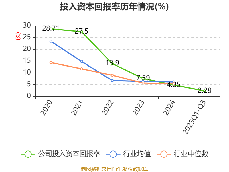 盈利能力方面, 2025年前三季度公司加权平均净资产收益率为2.43%,同比下降2.1个百分点。公司2025年前三季度投入资本回报率为2.28%,较上年同期下降1.9个百分点。