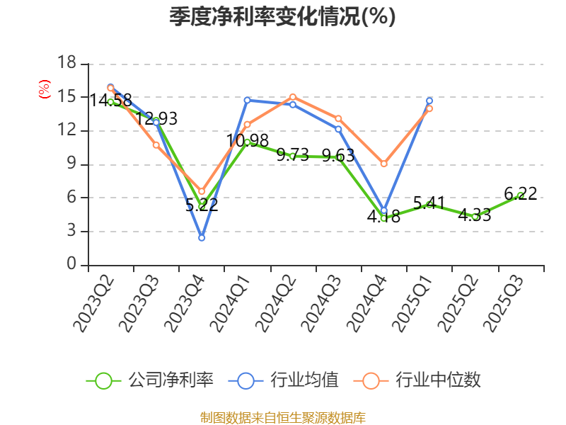 2025年前三季度,公司流动比率为6.55,速动比率为6.08。