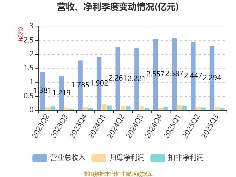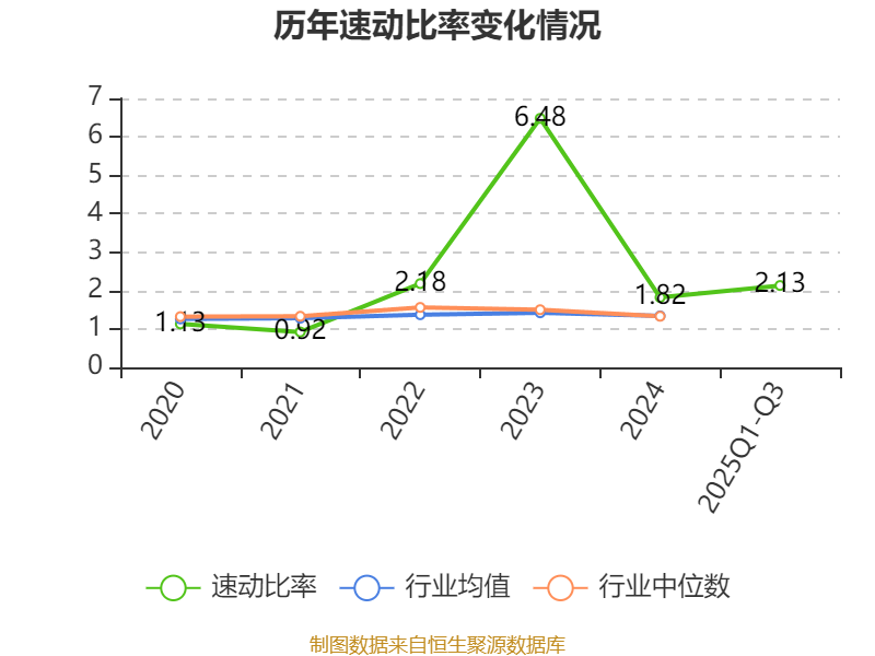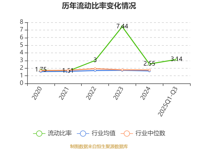 2025年前三季度,公司流动比率为3.14,速动比率为2.13。
