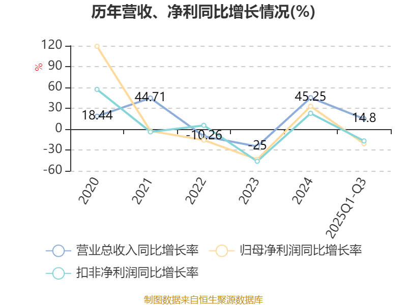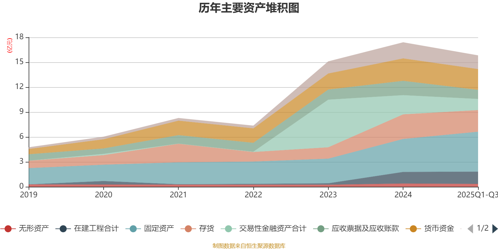 资产重大变化方面,截至2025年三季度末,公司固定资产较上年末增加21.19%,占公司总资产比重上升7.58个百分点;交易性金融资产合计较上年末减少42%,占公司总资产比重下降4.82个百分点;应收票据及应收账款较上年末减少36.67%,占公司总资产比重下降3.01个百分点;在建工程合计较上年末增加5.2%,占公司总资产比重上升1.26个百分点。