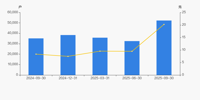 2024年9月30日至今,公司股东户数显著增长,区间涨幅为48.80%。2024年9月30日至2025年9月30日区间股价上涨142.45%。