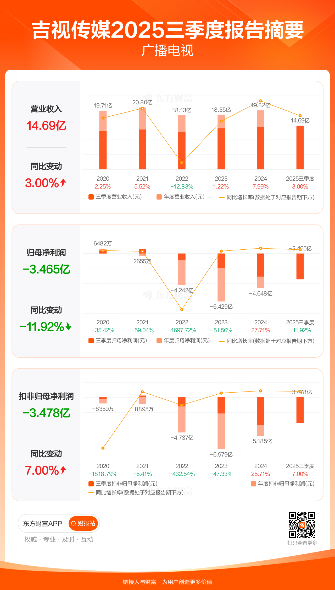 图解财报:吉视传媒前三季归母净利润-3.46亿元