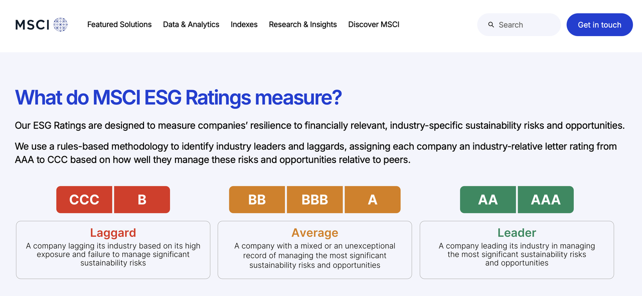 作为国际资本市场中最权威、最具影响力的ESG评估体系之一,MSCI的评级结果会直接引导全球大型投资机构的投资决策,评级从最高到最低分为AAA、AA、A、BBB、BB、B、CCC七个等级。其中,AAA与AA级代表行业领先水平;A、BBB与BB级构成行业中游梯队;而B级及CCC级则被归类为“落后阵营”,反映出公司在应对可持续发展相关风险方面能力不足。