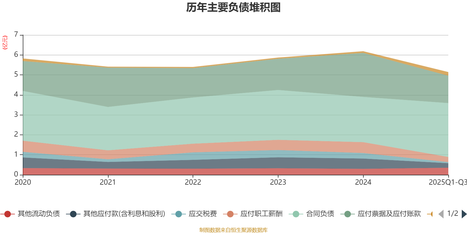 负债重大变化方面,截至2025年三季度末,公司应付票据及应付账款较上年末减少37.74%,占公司总资产比重下降3.49个百分点;合同负债较上年末增加19.02%,占公司总资产比重上升2.54个百分点;应付职工薪酬较上年末减少52.86%,占公司总资产比重下降1.26个百分点;其他应付款(含利息和股利)较上年末减少55.91%,占公司总资产比重下降1.25个百分点。