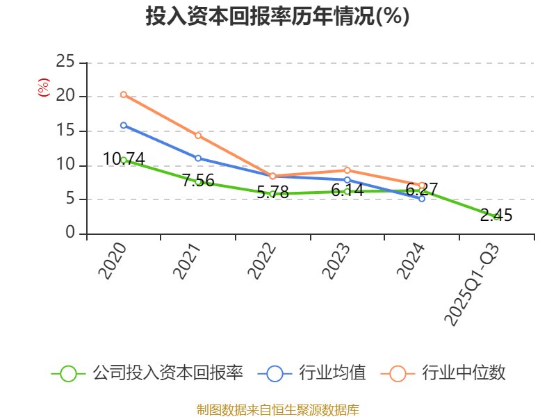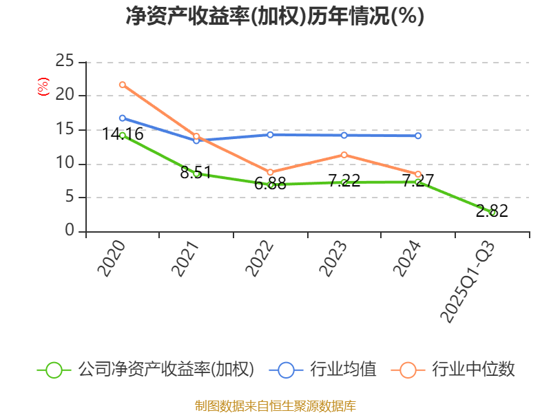 盈利能力方面, 2025年前三季度公司加权平均净资产收益率为2.82%,同比下降1.96个百分点。公司2025年前三季度投入资本回报率为2.45%,较上年同期下降1.6个百分点。