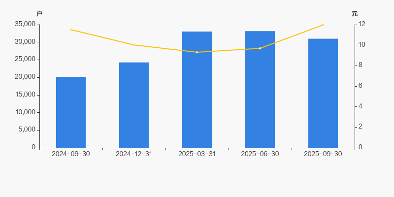 2024年9月30日至今,公司股东户数显著大幅增长,区间涨幅达53.77%。2024年9月30日至2025年9月30日区间股价上涨3.96%。