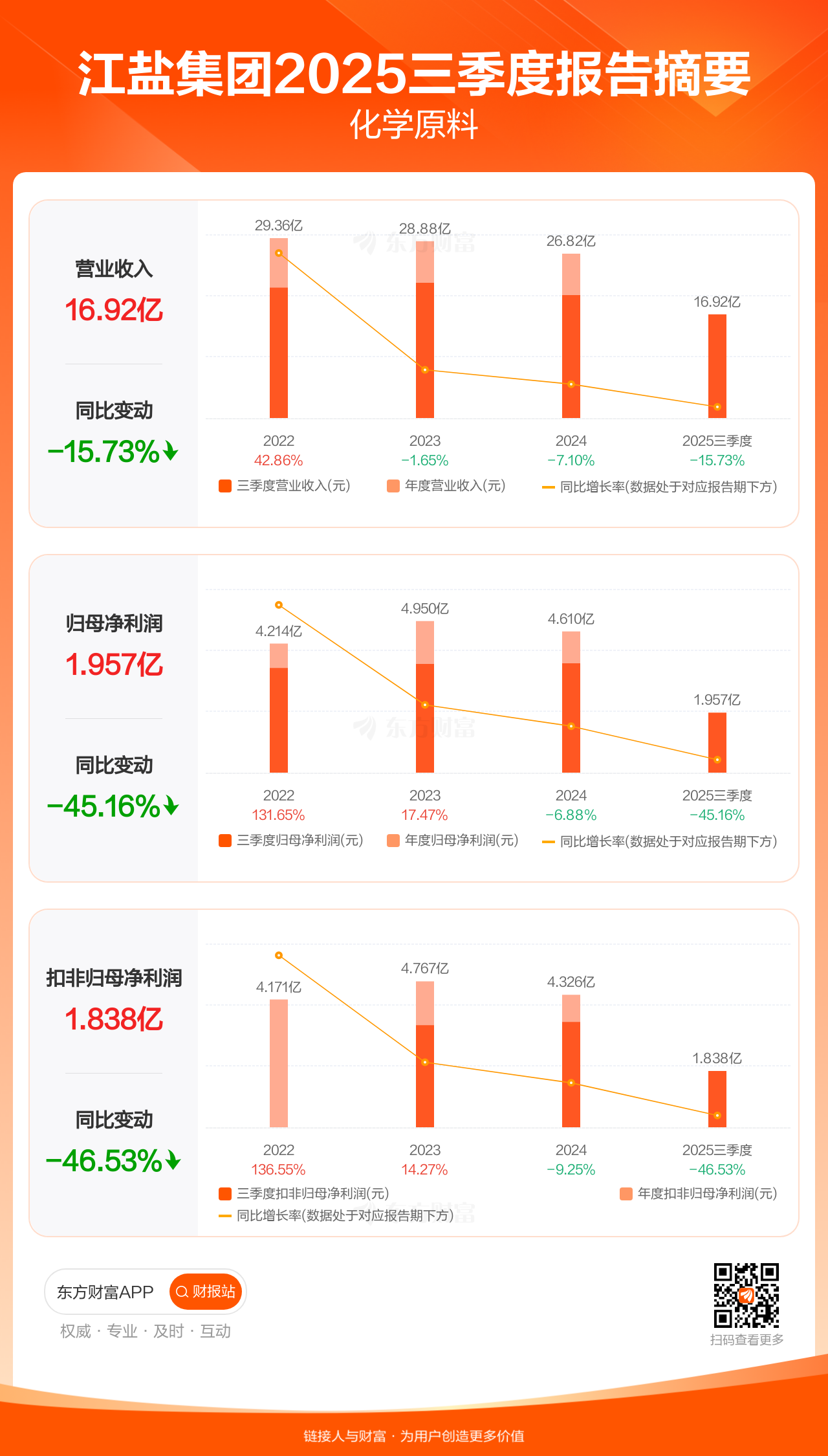 图解财报:江盐集团前三季归母净利润1.96亿元,同比减少45.16%